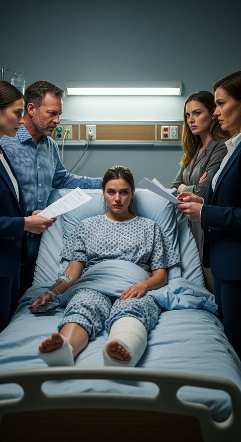 De botsing vond plaats in een waas van piepende banden, rondvliegend glas, en vervolgens een diepe, oorverdovende stilte. Toen ik wakker werd, kon ik mijn been niet bewegen. Ik proefde bloed en besefte dat ik op een brancard werd getild. « We hebben een pols, » klonk de dringende stem van een ambulancebroeder door de mist. « Gecompliceerde breuk. Mogelijk inwendige bloeding. Laten we gaan. »