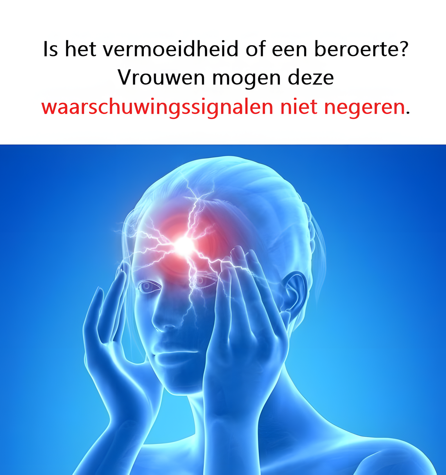 Typische symptomen van een beroerte, die zowel bij mannen als vrouwen voorkomen, kunnen worden onthouden met behulp van het acroniem FAST (Face, Arm, Speech, Time): gezichtsontspanning, zwakte in de armen, moeite met spreken en wanneer u de hulpdiensten moet bellen. Andere symptomen zijn problemen met het gezichtsvermogen in één of beide ogen, evenals evenwichts- of coördinatieproblemen.
