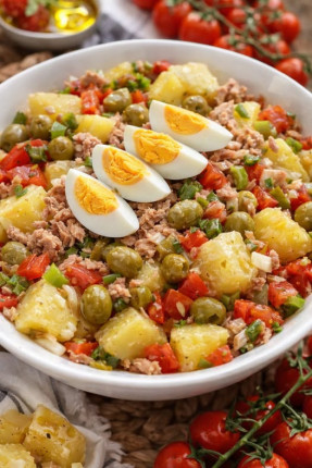 Hoewel veel mensen denken dat deze salade een moderne dieethype is, hebben de ingrediënten ervan een zeer lange geschiedenis. Kikkererwten werden al meer dan 7000 jaar geleden door de Romeinen en Grieken verbouwd! Tonijn
