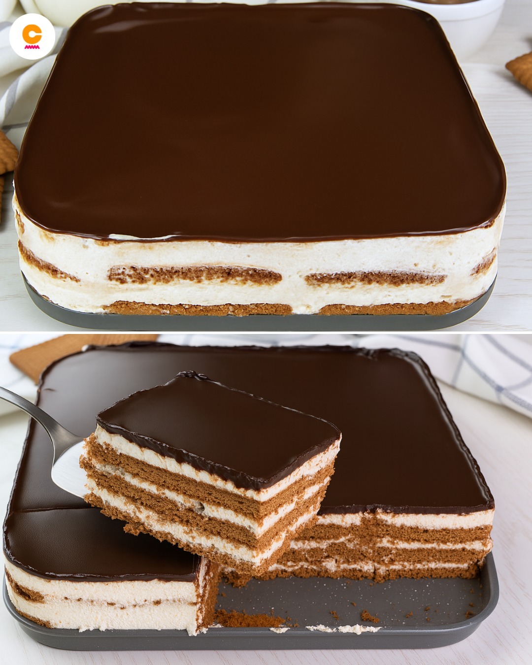 De lagen koekjes, chocolade en room, afgewerkt met chocoladeglazuur, geven de taart een intense maar evenwichtige smaak. Serveer hem als tussendoortje of als heerlijk dessert: hij zal zeker in de smaak vallen bij zowel volwassenen als kinderen.