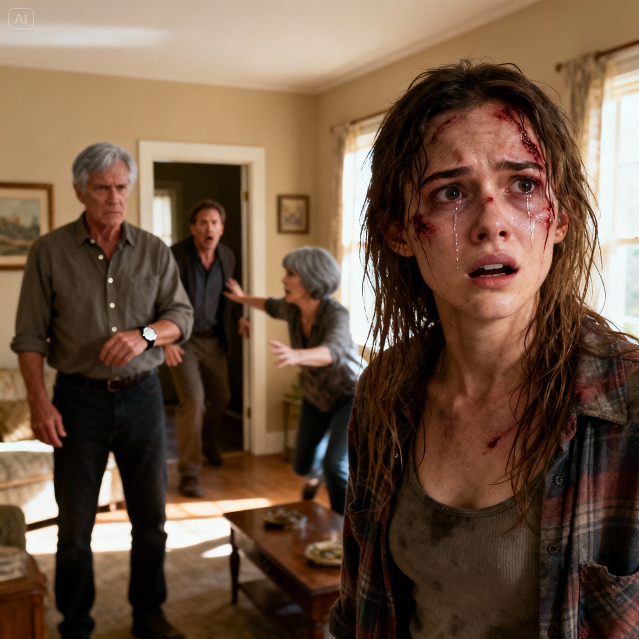 Mijn vader, John Carter , was nog maar net de woonkamer binnengestapt of de feestvreugde van mijn verjaardag sloeg al om in een doodse stilte. Ballonnen hingen slap tegen de muur, een half aangesneden chocoladetaart stond onaangeroerd en elke ademhaling voelde alsof die langs mijn ribben schuurde. Ik probeerde mijn gezicht af te wenden, maar het was te laat.