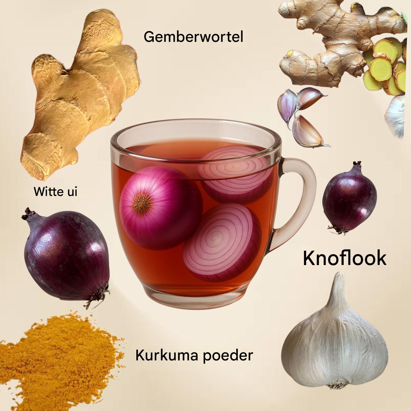 Bestrijdt virussen, bacteriën en ontstekingen met knoflook, kurkuma en gember.