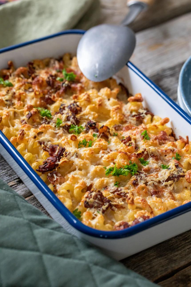 Macaroni-ovenschotel met spek en Parmezaan – makkelijk, romig en ultiem comfortfood