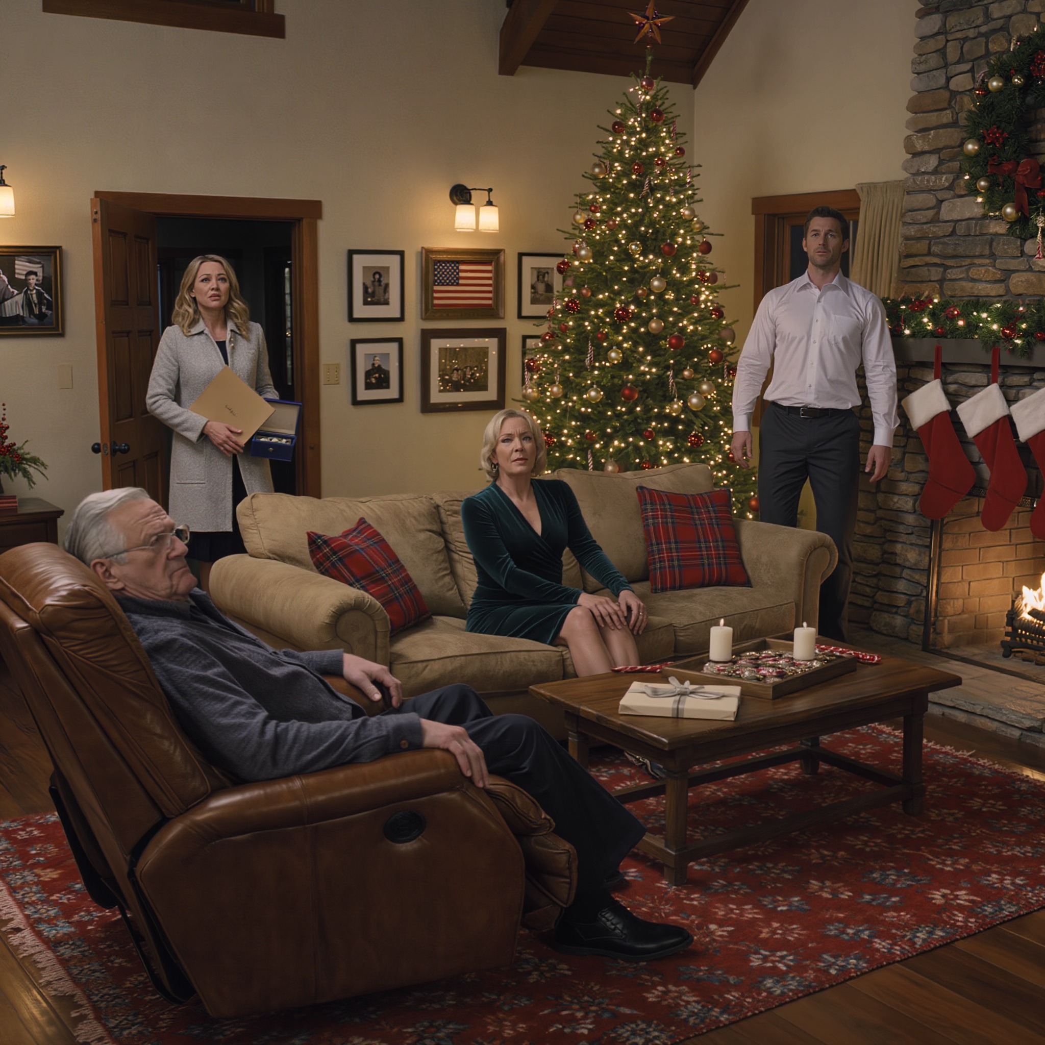Het was kerstavond in Maple Ridge, Ohio. De sneeuw viel in dikke, stille klonten die het geluid van mijn banden die over de lange, kronkelige oprit van het huis van mijn schoonouders raasden, dempten. Ik keek op de klok op het dashboard. Ik was precies veertig minuten te vroeg.