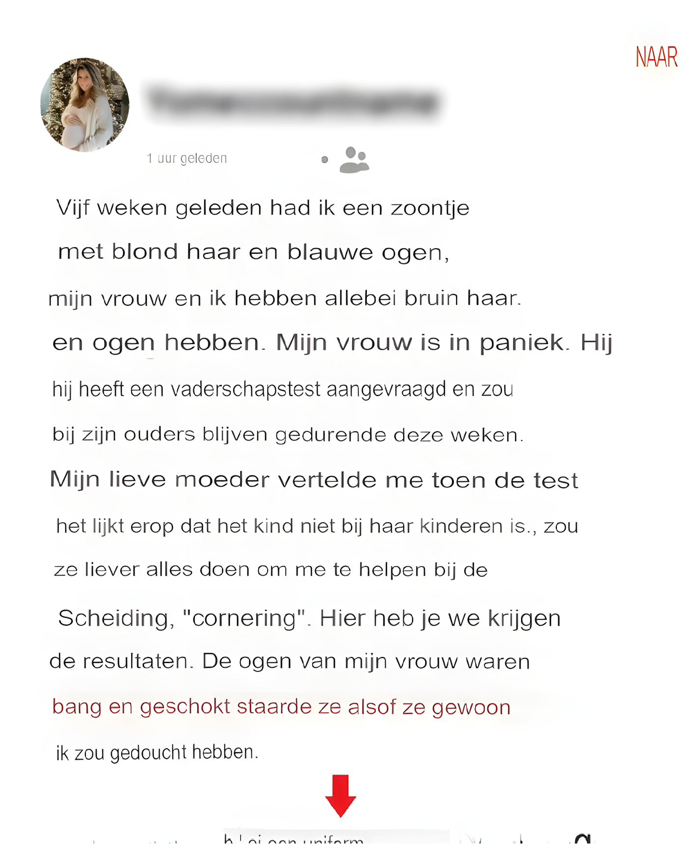 Als reactie op deze onverwachte onthulling reageerde de echtgenoot van de OP emotioneel. Hij uitte zijn ongemak en weigerde naar haar uitleg te luisteren. Hoewel ze probeerde uit te leggen dat pasgeboren baby’s vaak lichter haar en lichtere ogen hebben en dat dit in de loop van de tijd kan veranderen, was haar man niet overtuigd.