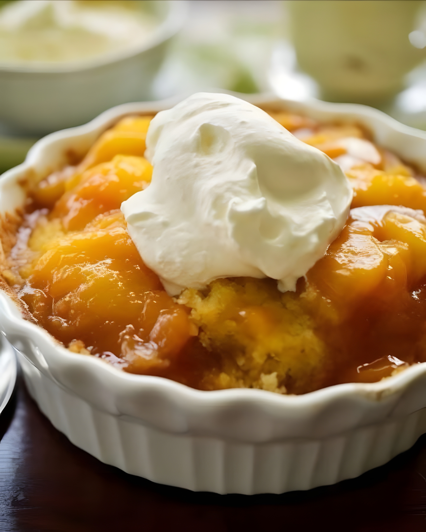 Een heerlijke, warme en smeuïge perzikpudding die perfect is met een bolletje ijs of een toef slagroom. Deze pudding combineert zachte perziken, een luchtige bodem en een gekarameliseerde topping voor een onweerstaanbare traktatie!