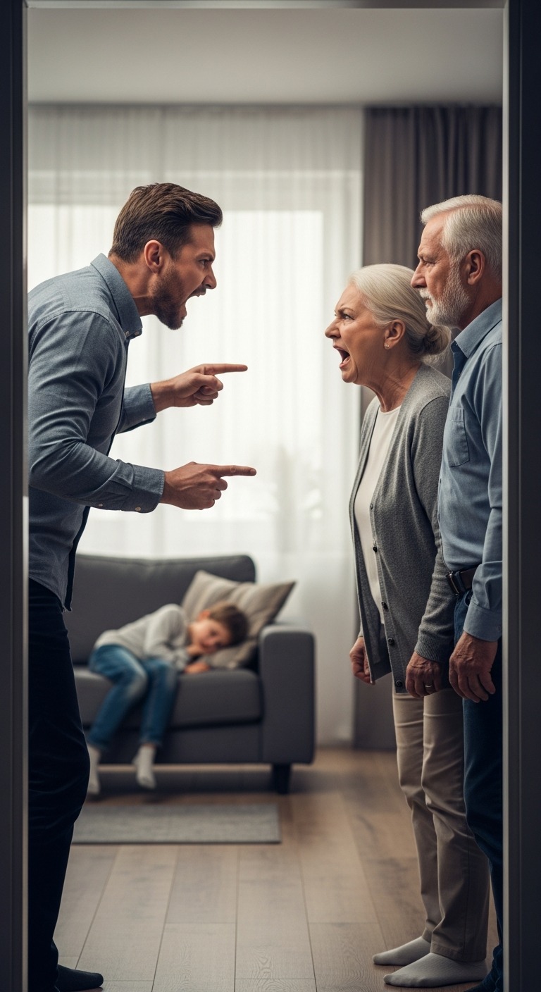 Ik keek niet naar haar. Ik keek naar Luke. Hij lag opgerold op de bank, zijn gezicht vasthoudend. Toen ik zijn kleine handjes wegtrok, zag ik het. Zijn lip was gescheurd, opgezwollen en bloedde, een duidelijke karmozijnrode vlek op zijn bleke huid.