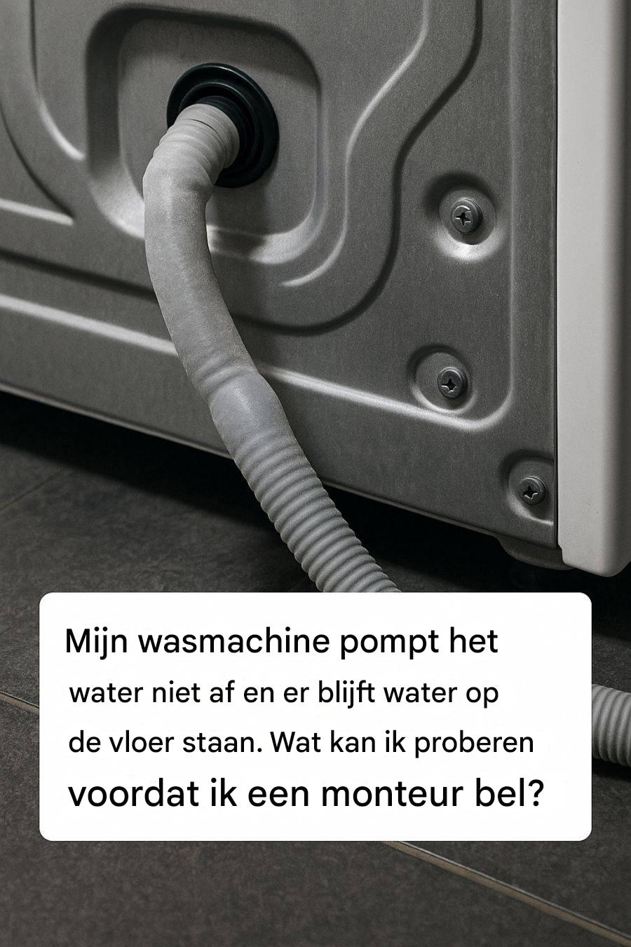 Mijn wasmachine pompt het water niet af en er blijft water op de vloer staan. Wat kan ik proberen voordat ik een monteur bel?