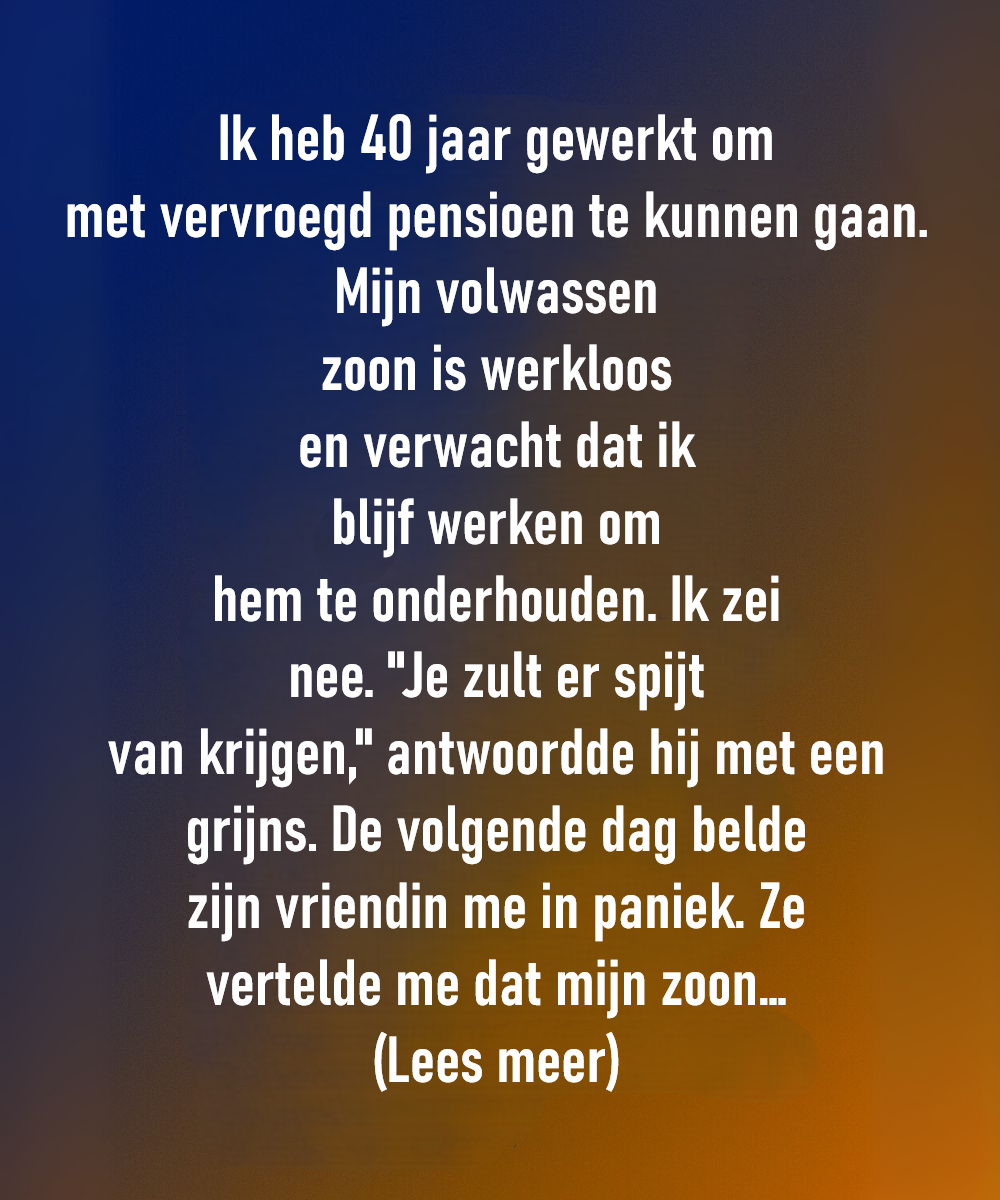 Veertig jaar lang heb ik me volledig op mijn werk gestort, elke dollar die ik kon sparen en heb ik gedroomd van de dag dat ik van mijn pensioen zou kunnen genieten.