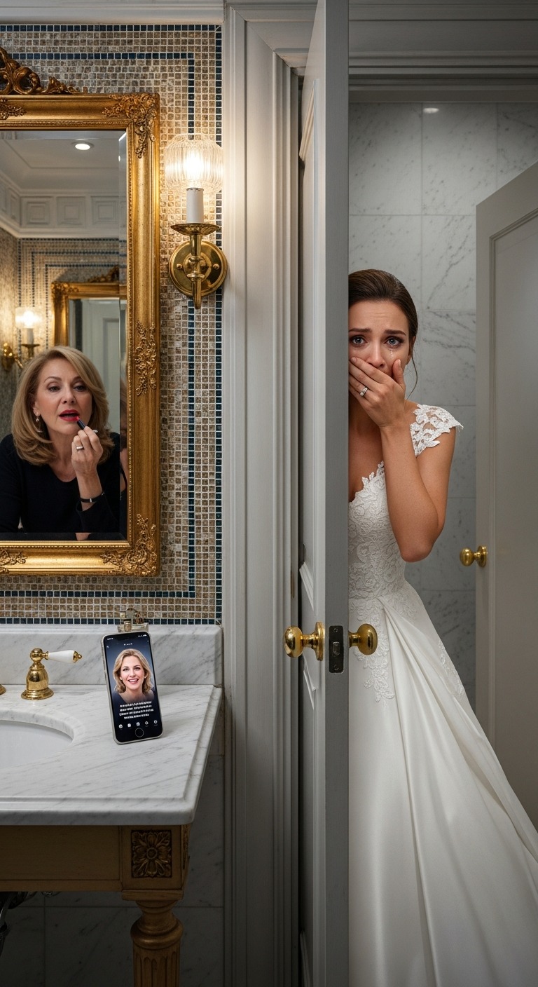 Ik, Emily , stond in de badkamer van de privébruidssuite en drukte een koele, vochtige handdoek tegen mijn nek. Mijn weerspiegeling in de vergulde spiegel toonde een vrouw die eruitzag als een prinses. Mijn op maat gemaakte Vera Wang-jurk was een wolk van zijde en kant, en de diamanten tiara op mijn hoofd was een familie-erfstuk dat meer waard was dan de meeste huizen.