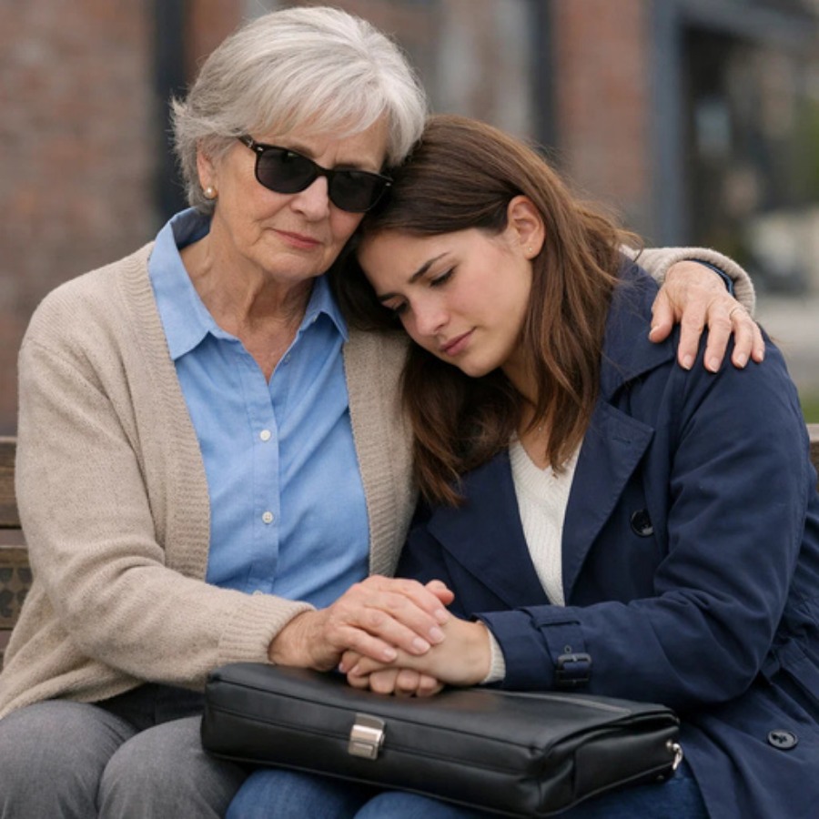 De vrouw kantelde haar hoofd alsof ze de leugen doorzag. ‘Niemand die alleen in de regen staat, is veilig. Kom, kind. Mijn chauffeur komt er zo aan. Je kunt bij me wachten.’