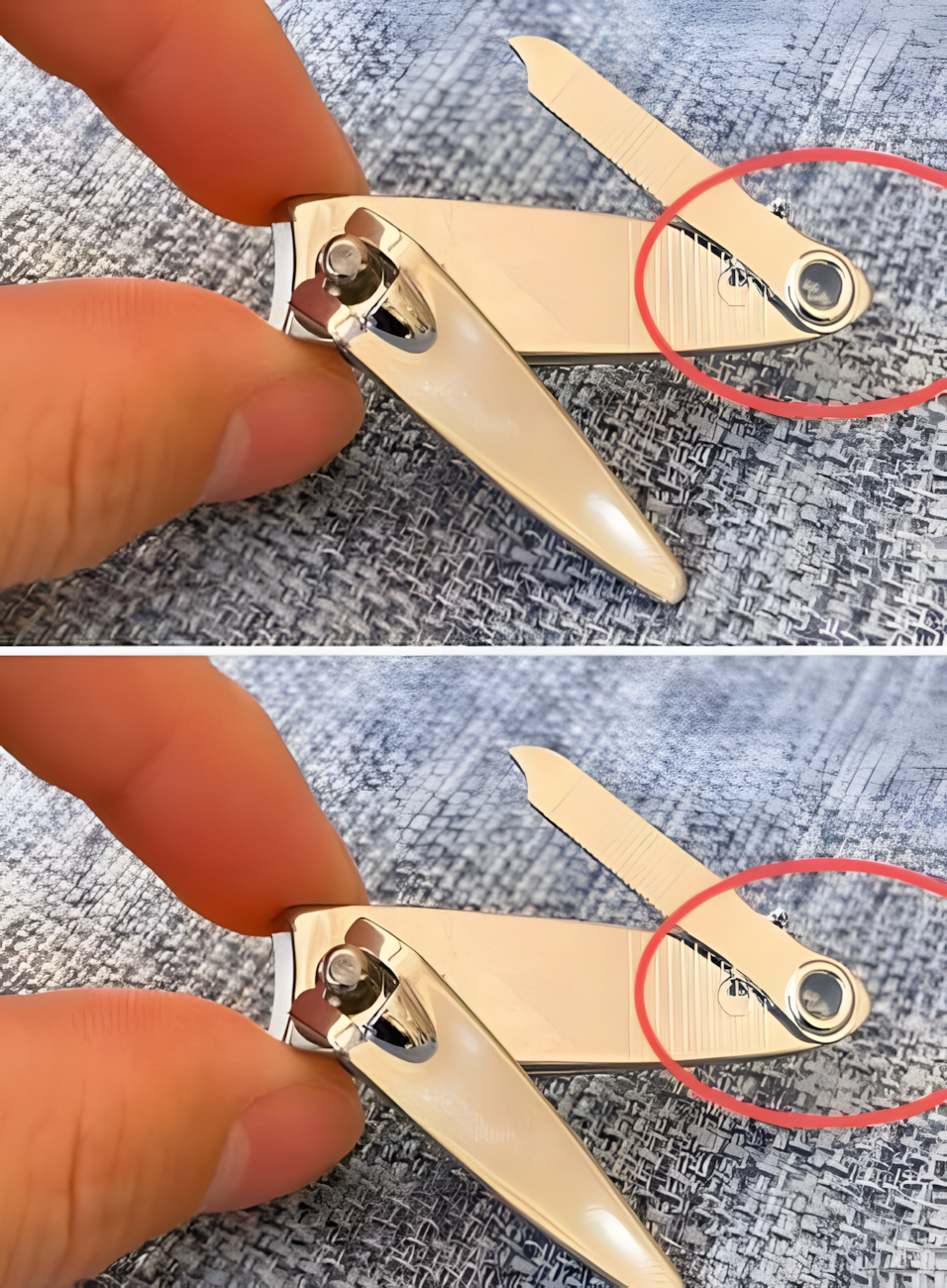 De vergrendeling van sommige nagelknippers is ontworpen om meer te doen dan alleen veiligheid garanderen. Dit mechanisme maakt de knipper compact en handig voor op reis, maar het kan ook gebruikt worden als geïmproviseerde clip om papieren of lichte voorwerpen vast te houden.