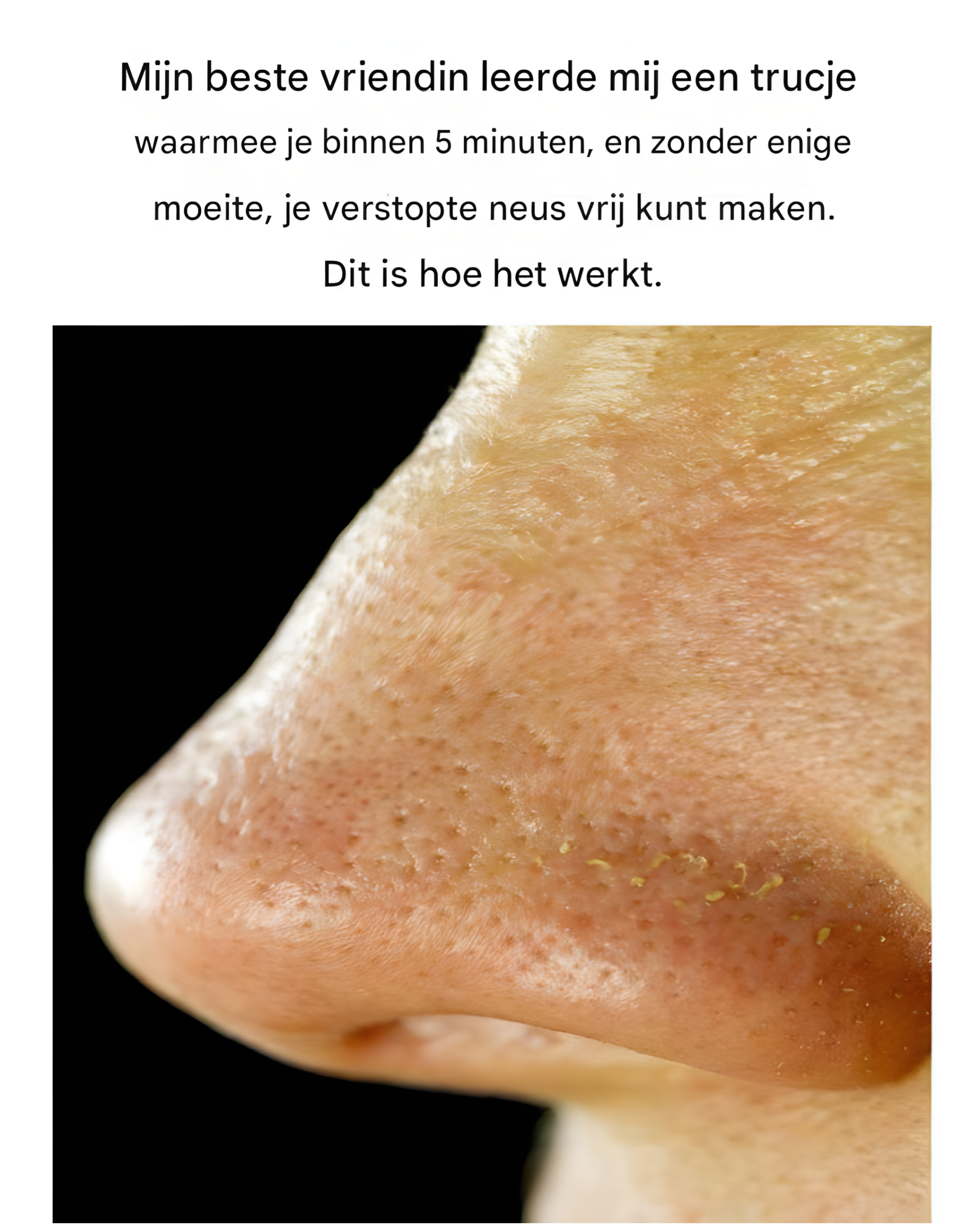Het kan ontzettend frustrerend zijn om voortdurend last te hebben van een verstopte neus. Het maakt niet uit of dit wordt veroorzaakt door allergieën, een verkoudheid of bijholteproblemen. Dit maakt het niet alleen moeilijker om goed te ademen, maar het kan ook uw slaap en dagelijkse activiteiten verstoren. Het belang van het vinden van een effectieve en gemakkelijke oplossing voor dit probleem kan niet genoeg worden benadrukt. Omdat ik zelf ook last heb van een verstopte neus, was ik erg blij toen mijn beste vriendin mij een heel simpel trucje vertelde waarmee je er in slechts vijf minuten vanaf bent.