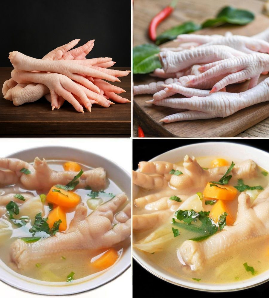 Kippenpoten doen dit allemaal omdat ze rijk zijn aan collageen , dat in vergelijkbare hoeveelheden voorkomt als in eieren en gelatine. Collageen geeft de huid elasticiteit, verbetert de calciumopname in het lichaam en versterkt de gewrichten.