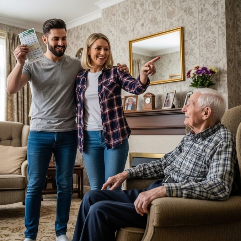 Ik sloeg mijn armen over elkaar bij de extra’s. Een oudere man in een fauteuil die ik niet meer bezat, in een huis dat ik zelf had betaald. « Het pensioen dekt wat het dekt, » zei hij zachtjes. « Misschien kan een van hen een baan vinden. »