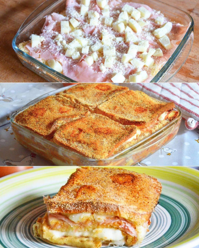 Het mooie aan dit recept is hoe flexibel het is: je kunt verschillende kazen gebruiken, variëren met vleeswaren of groenten toevoegen voor extra kleur en voedingswaarde. Dankzij de lagen brood wordt alles mooi zacht en vezelig tijdens het bakken, terwijl de bovenkant goudbruin en licht krokant wordt.