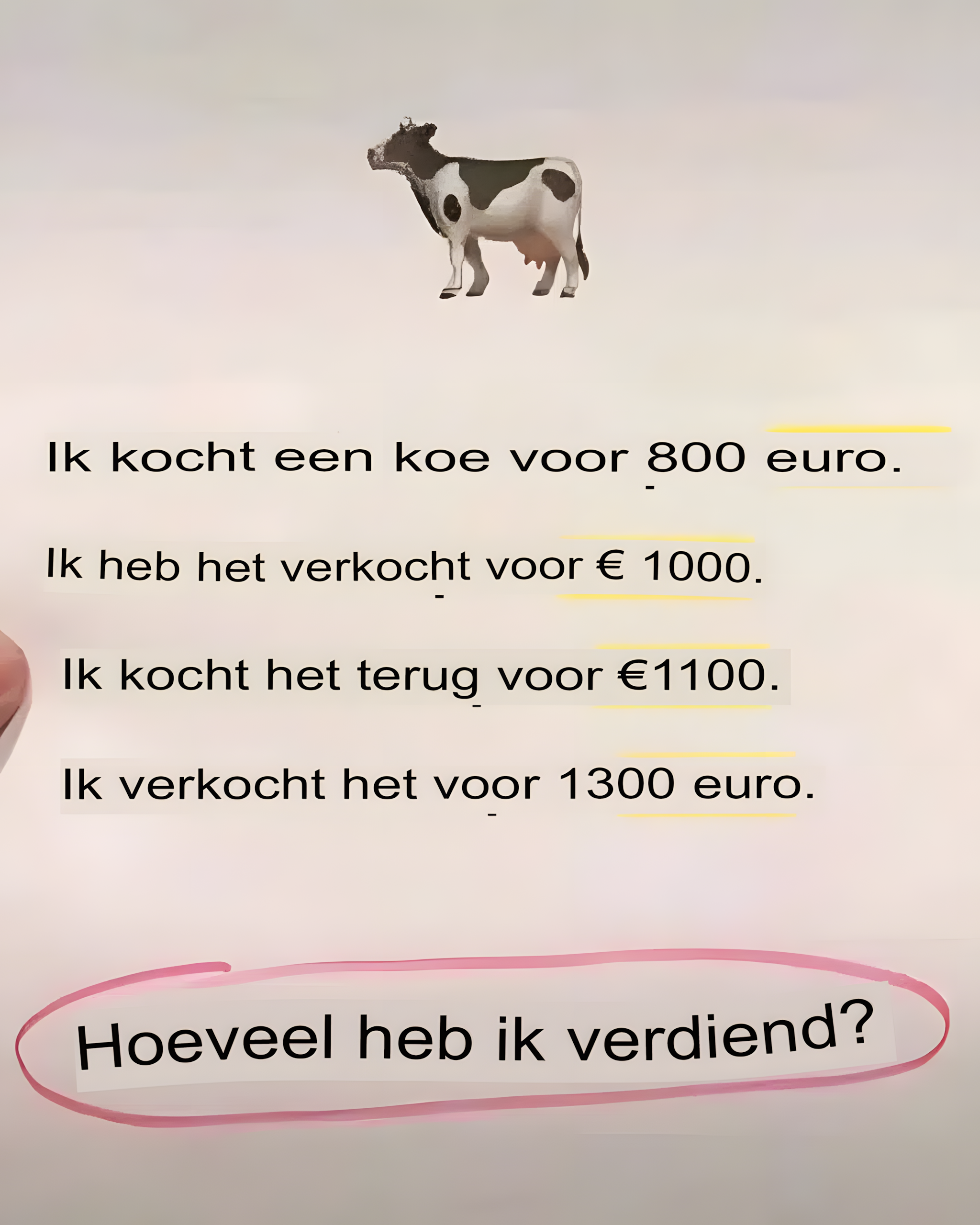 Houd je van kleine uitdagingen die je hersenen aan het werk zetten en waar je tegelijkertijd plezier aan beleeft? Deze wiskundige puzzel over een koe circuleert al enkele weken actief op sociale netwerken. Op het eerste gezicht lijkt het eenvoudig. Maar naarmate de cijfers toenemen, ontstaat er verwarring. Bent u klaar om de uitdaging aan te gaan? Wij durven te wedden dat je dit probleem het liefst met je vrienden wilt oplossen onder het genot van een kopje koffie!