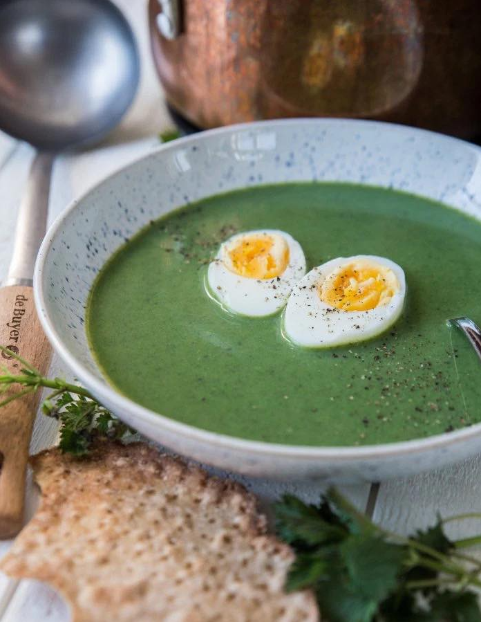 Romige brandnetelsoep met eierhelften