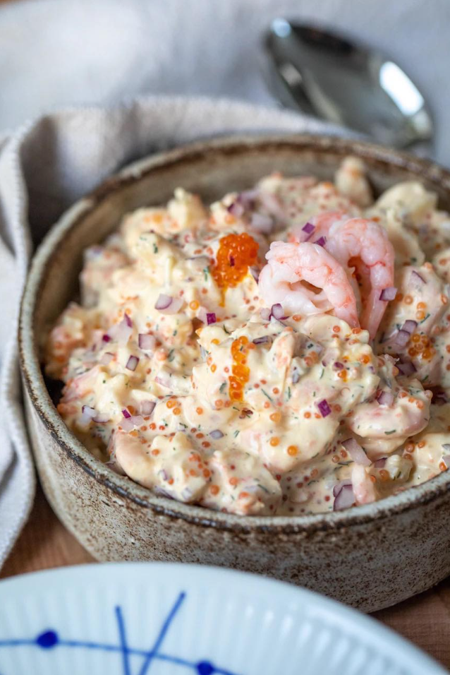 Deze heerlijke garnalenmix met kuit en rode ui is een echte klassieker voor wie van makkelijke, romige en smaakvolle gerechten houdt. Het is perfect voor op gepofte aardappelen, stevige sandwiches, toastjes of als snelle lunch. Dankzij de combinatie van zachte garnalen, frisse zure room, romige mayonaise, mosterd en een vleugje dille ontstaat een mengsel dat zowel fris als rijk van smaak is. De toevoeging van rum roept een feestelijke, luxe associatie op – precies wat dit gerecht zo bijzonder maakt.