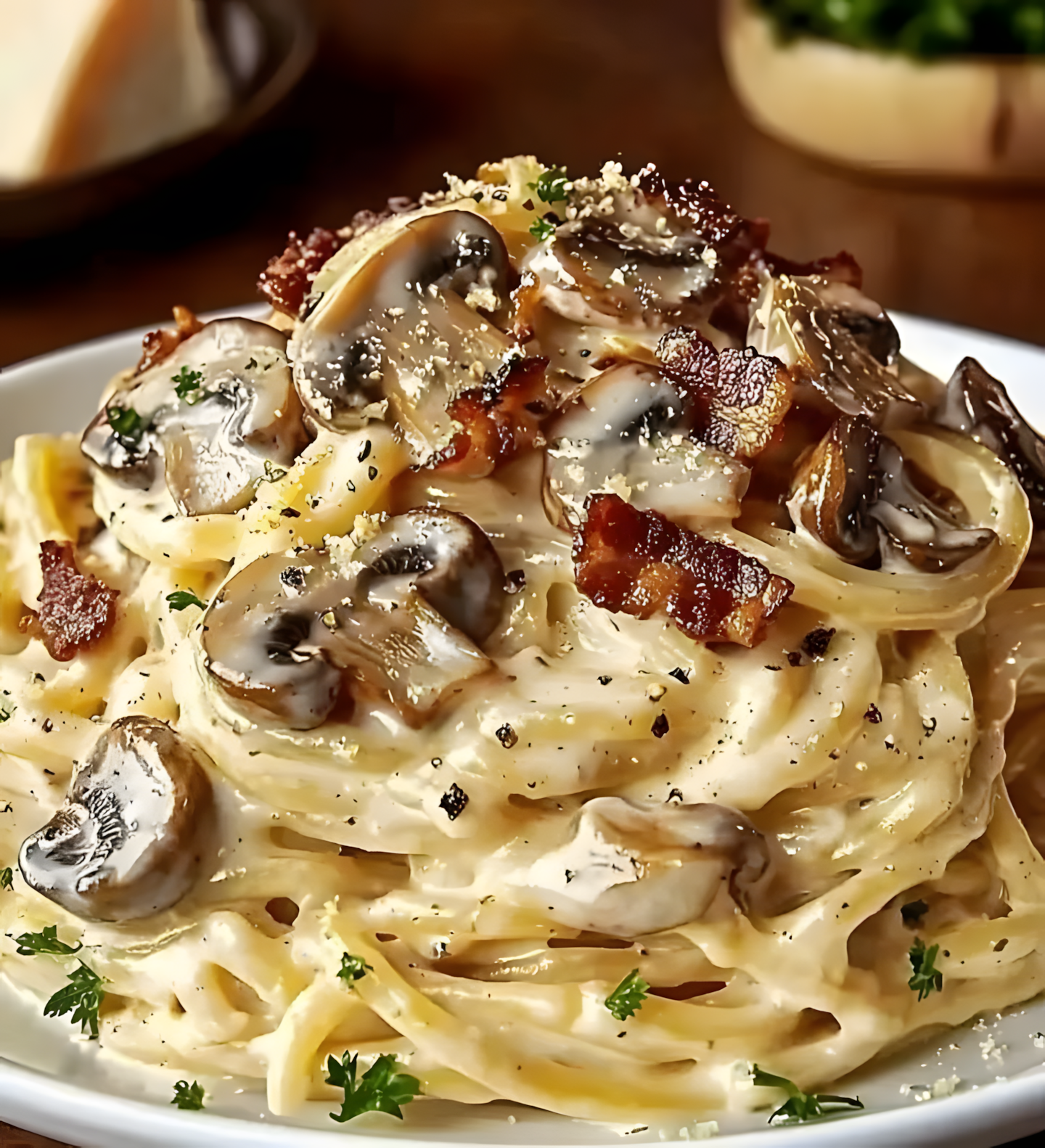 Zin in een romige, knoflookachtige en heerlijke pasta? 🤤 Deze Romige Knoflook-Champignon & Bacon Pasta is een absolute aanrader! 👍 De knapperige bacon, gecombineerd met gebakken champignons en een fluweelzachte knoflook-Parmezaanse saus, creëert de perfecte maaltijd van restaurantkwaliteit gewoon thuis! 😍✨ Alsof je in Italië bent! 🇮🇹