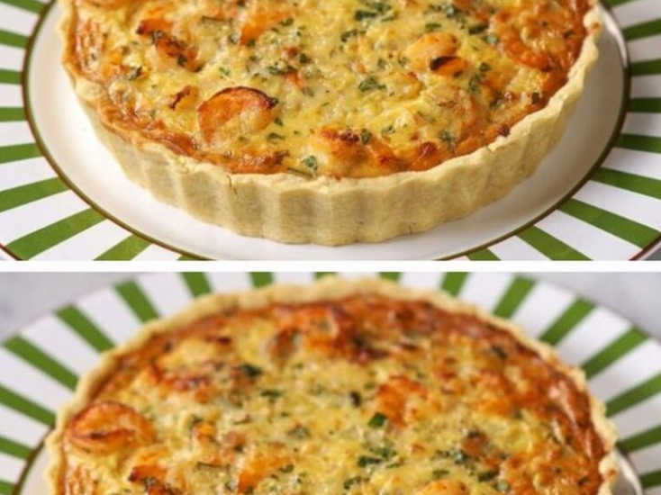 Deze hartige garnalentaart is ideaal voor wie snel iets smaakvols op tafel wil zetten. De combinatie van een luchtige, zelfgemaakte korst, romige vulling en perfect gebakken garnalen zorgt voor een taart die zowel elegant als eenvoudig is. Dankzij de zachte ui, geurige knoflook en frisse citroentoets krijgt de taart een uitgebalanceerde smaak die bij veel gelegenheden past – van doordeweekse maaltijd tot een lichte lunch met salade.
