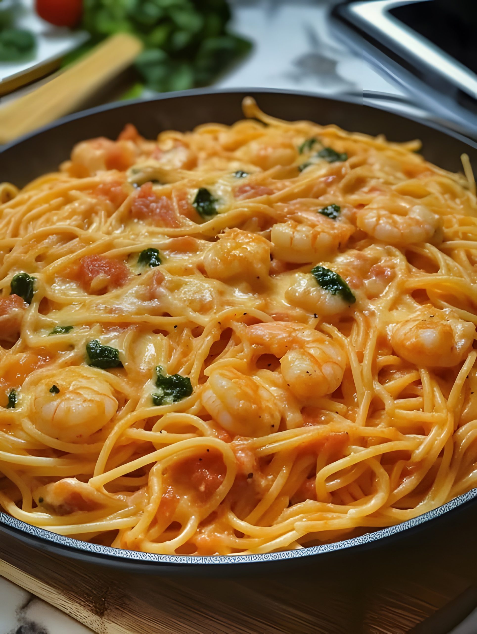 🍝 Spaghetti met Garnalen en Romige Tomatensaus – Eenvoudig & Heerlijk