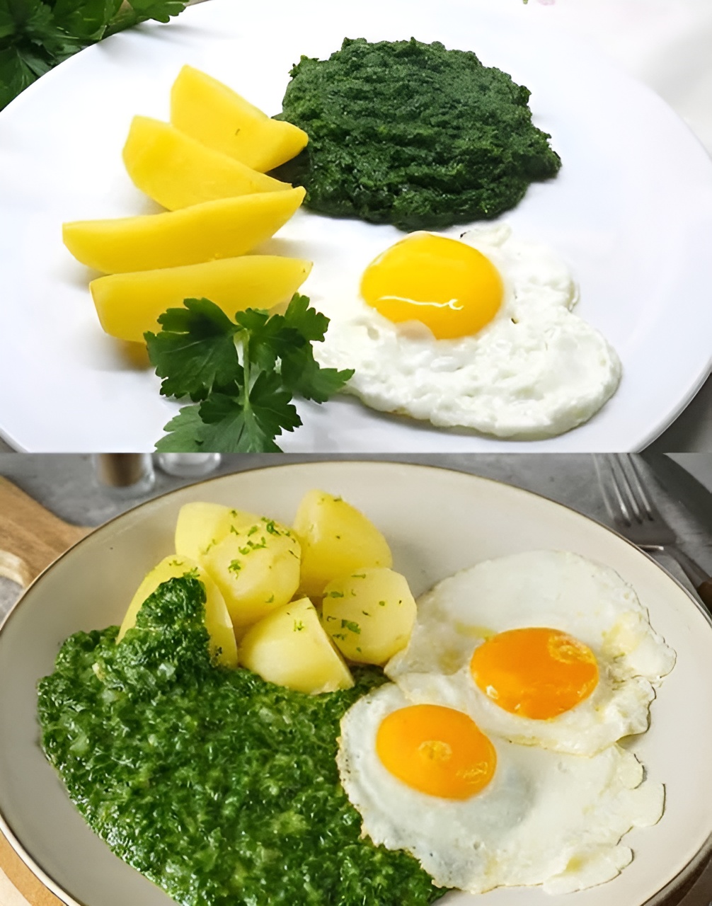 - Blancheer de spinazie kort in kokend water, giet af en vang 200 ml van het kookvocht op.