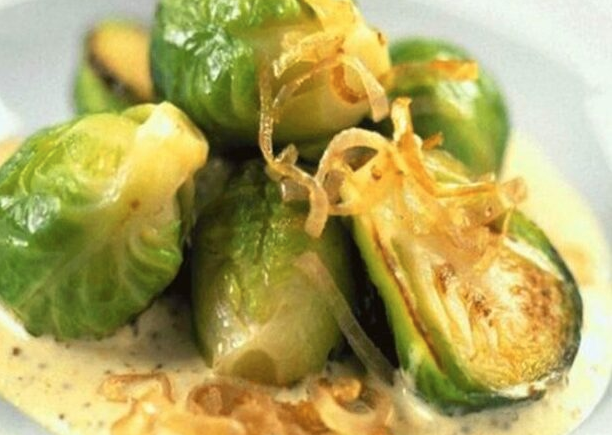 Spruitjes in mosterdsaus en roomkaas