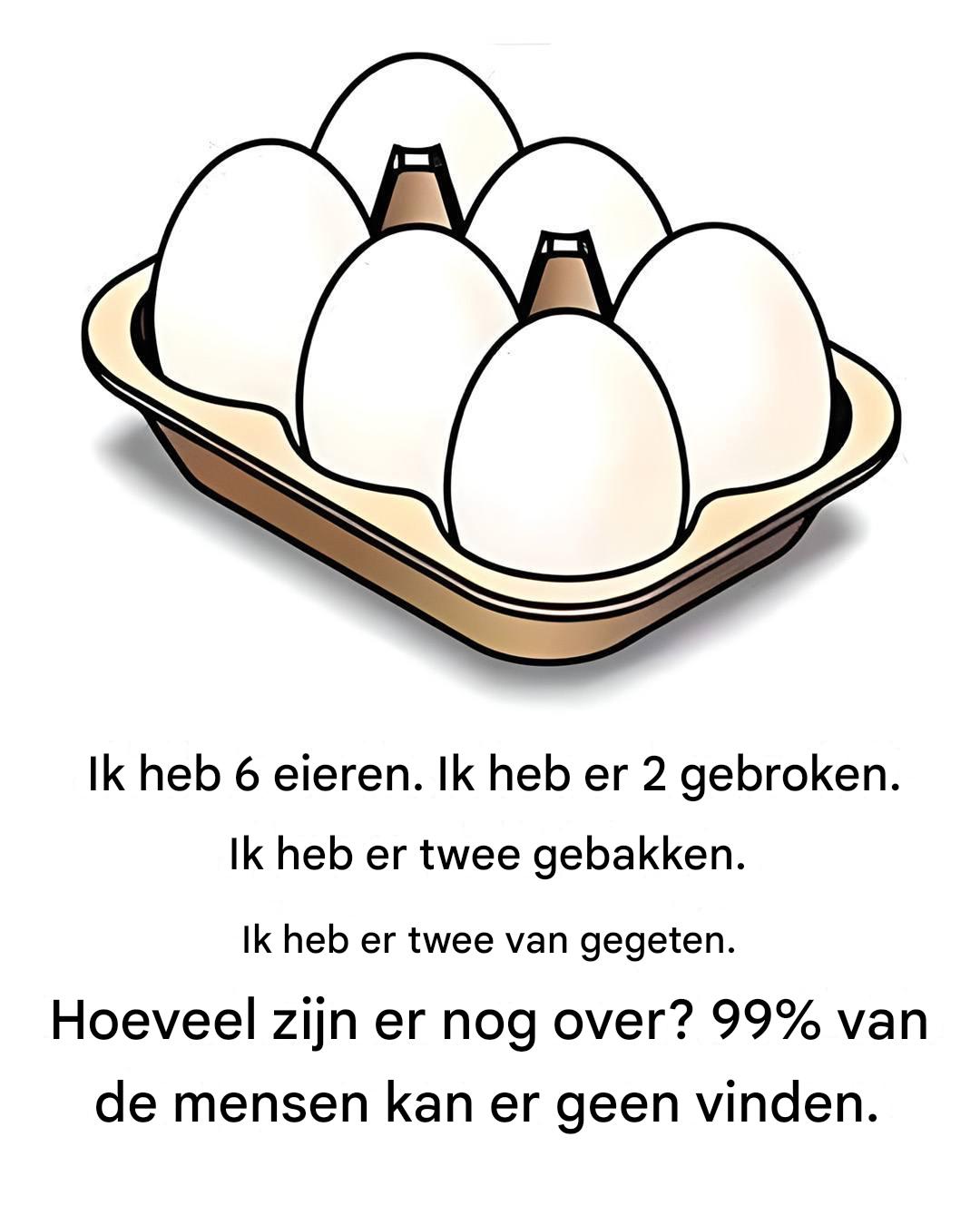 Ben je wel eens in de war geraakt door een ogenschijnlijk simpele vraag? Bijvoorbeeld: « Ik heb zes eieren, ik breek er twee, ik kook er twee en ik eet er twee op. Hoeveel eieren blijven er over? » De meesten van ons aarzelen, maken een snelle berekening in ons hoofd en hebben het uiteindelijk fout. Toch zijn dit soort puzzels slechts kleine logische spelletjes, bedoeld om onze hersenen… en ons geduld… te prikkelen. Dus waarom lopen we er zo vaak in vast? En nog belangrijker, hoe kunnen we oefenen met het oplossen ervan zonder in de val te trappen?