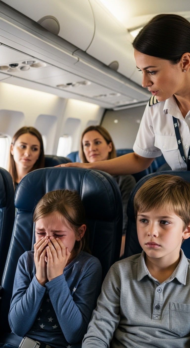 Terwijl het vliegtuig begon te taxiën, stapte een keurig geklede vrouw van midden dertig – Karen Miller – aan boord met haar 8-jarige zoon Oliver . Ze namen plaats direct achter Lily. Karen had de zelfverzekerde, arrogante uitstraling van iemand die gewend was haar zin te krijgen, met haar telefoon in de ene hand en een designertas over haar andere arm.
