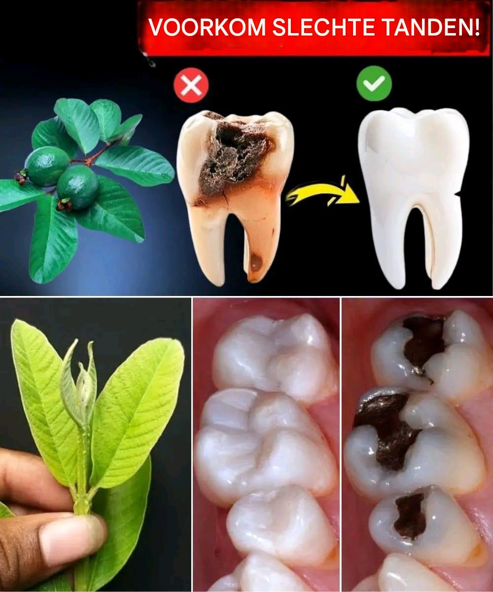 Tandbederf is wereldwijd een van de meest voorkomende gebitsproblemen. Hoewel de moderne tandheelkunde veel behandelingen biedt, heeft niet iedereen de tijd of middelen om meteen een kliniek te bezoeken. Gelukkig biedt de natuur ons eenvoudige remedies, en guavebladeren behoren tot de meest effectieve. Guaavebladeren staan bekend om hun antibacteriële, ontstekingsremmende en pijnstillende eigenschappen en worden al eeuwenlang in de traditionele geneeskunde gebruikt om mondproblemen te bestrijden. Als u op zoek bent naar een natuurlijke, betaalbare en veilige manier om tandbederf thuis te verlichten, zijn hier de top 3 remedies tegen guavebladeren die u vandaag kunt proberen.1. Kauwen op verse guavebladerenDe gemakkelijkste manier om guavebladeren te gebruiken voor tandbederf, is door er direct op te kauwen. Hoe je dat doet:Was 2-3 verse guaveblaadjes grondig. Kauw ze langzaam totdat het sap zich in je mond verspreidt. Concentreer u op het aangetaste tandgebied en spuug vervolgens het residu uit. Waarom het werkt:Bij het kauwen komen natuurlijke verbindingen vrij, zoals quercetine en flavonoïden die bacteriën doden, ontstekingen verminderen en pijn verlichten die wordt veroorzaakt door gaatjes.2. Guave Blad MondwaterDraaien