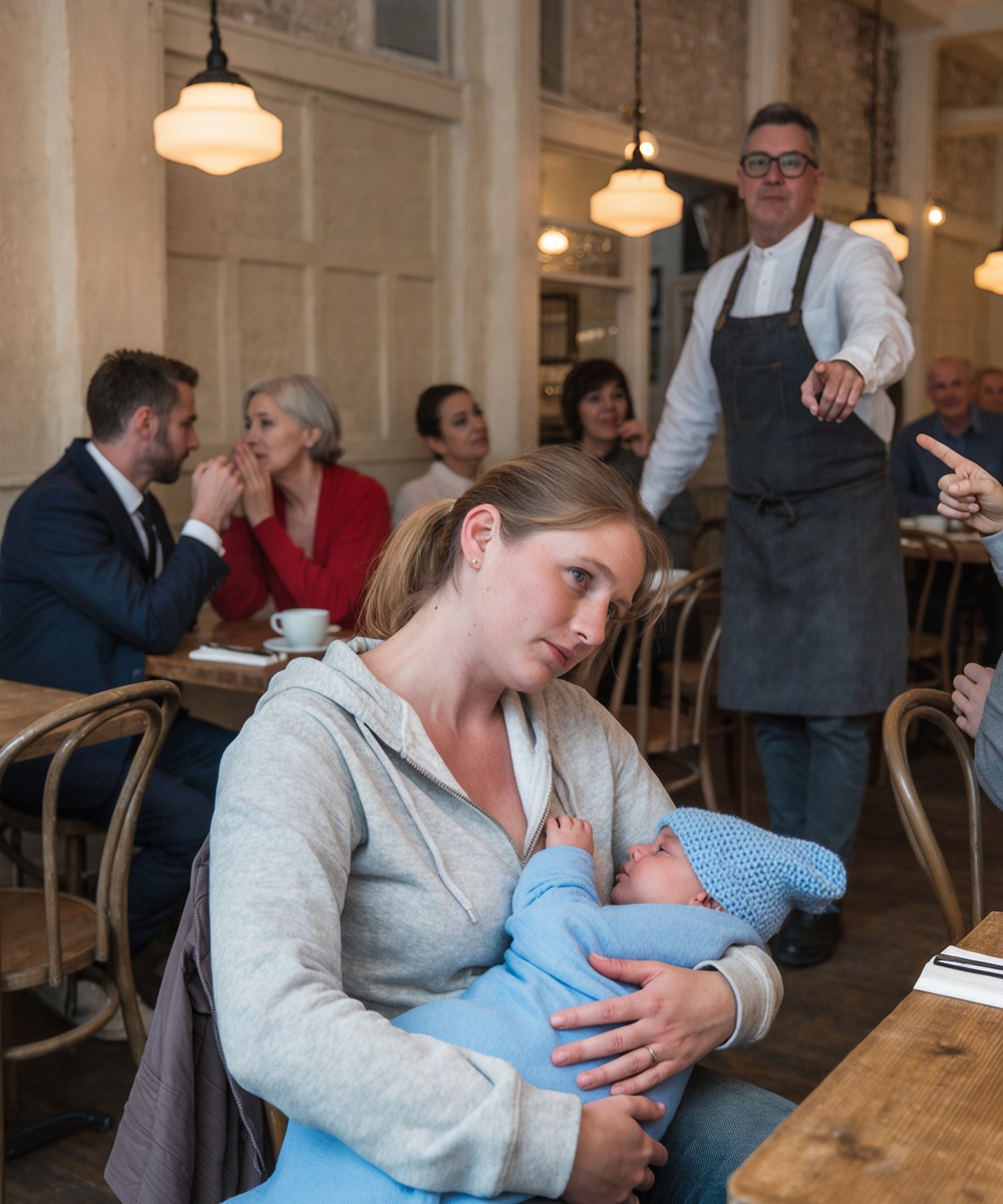Het woord « ga weg » trof me als ijswater. Buiten waaide een snijdende wind, 20 minuten thuis, en het kleine lichaampje van mijn baby beefde van de honger. Ik klemde mijn armen op elkaar om hem te omhelzen. Mijn hart schreeuwde het uit: « Laat me alsjeblieft mijn baby voeden. »