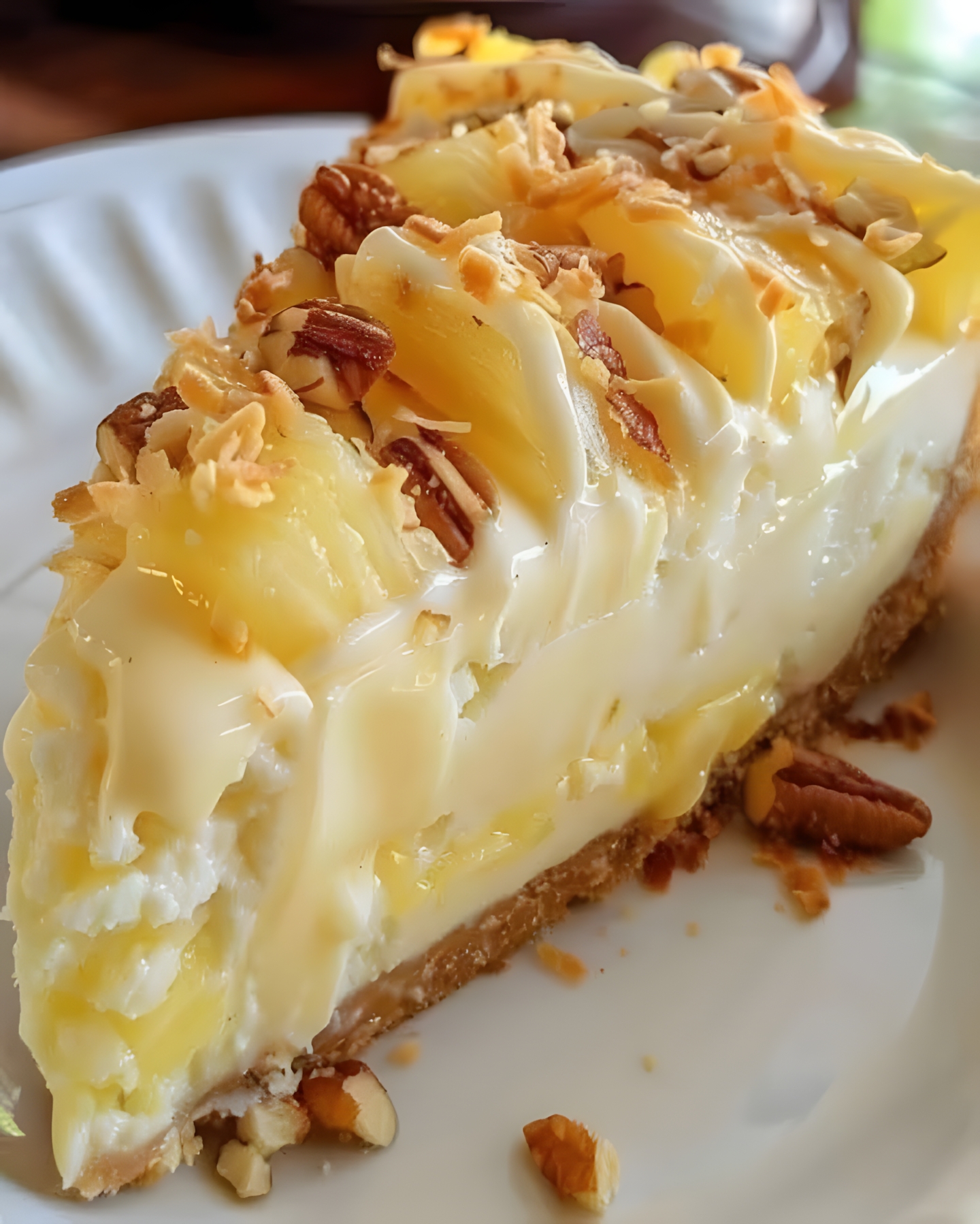 Snak je naar een licht, verfrissend en ongelooflijk lekker dessert? Deze no-bake tropische cheesecake is jouw antwoord! π Met een boterachtige koekjesbodem, een rijke en fluweelzachte roomvulling, en een hemelse topping van sappige ananas, knapperige pecannoten en geroosterde kokos, transporteert elke hap je rechtstreeks naar het paradijs! π΄β¨