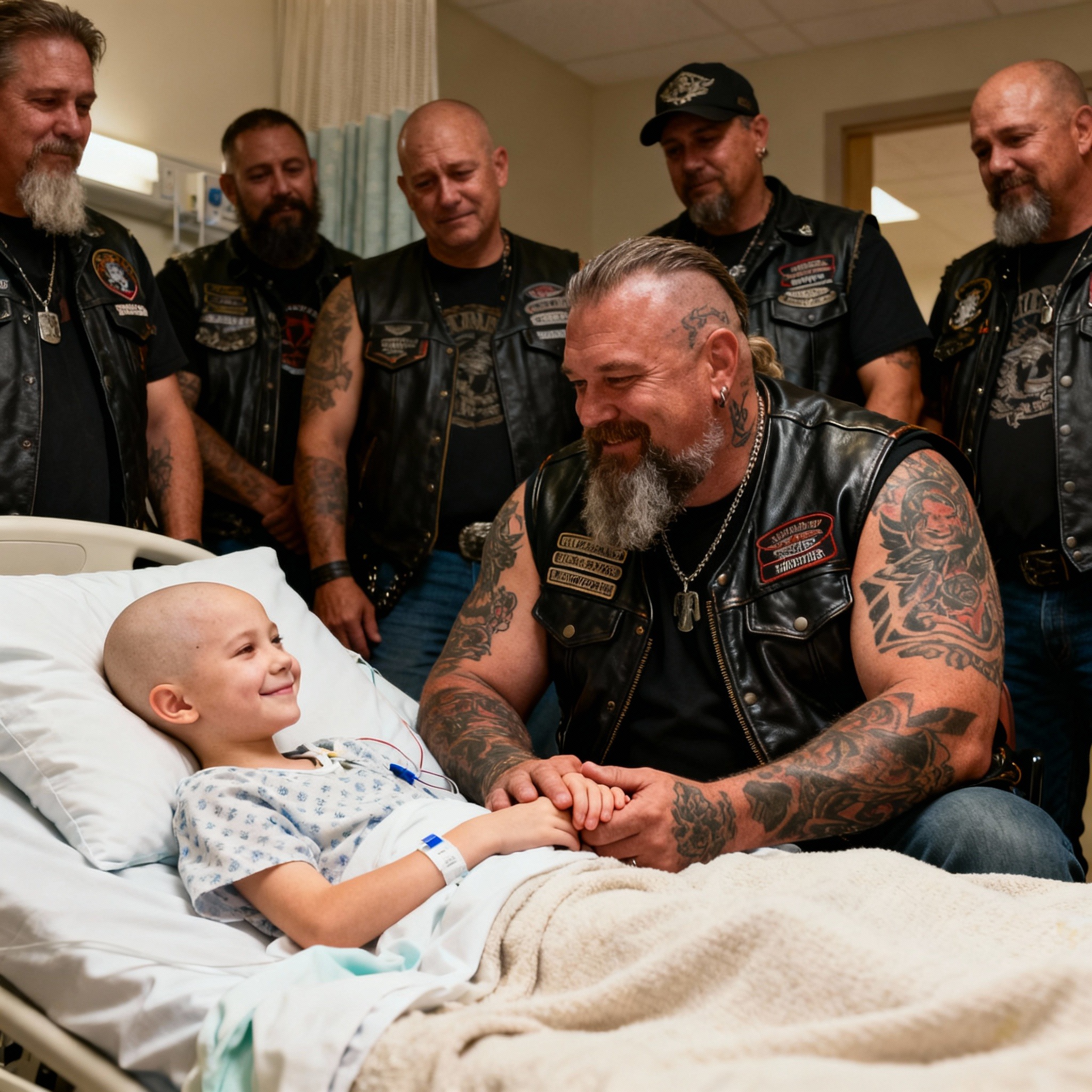 Haar laatste woorden voordat de kanker haar stem nam waren “Ik wou dat ik een vader had zoals jij” voor Big John, een Harley-rijder van 300 pond met tranen getatoeëerd op zijn gezicht die per ongeluk in haar kamer was gestruikeld op zoek naar de badkamer.