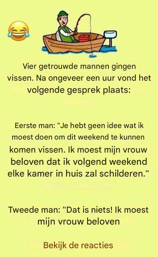« Jullie hebben geen idee wat ik heb meegemaakt om hier te komen », zei hij. « Ik heb het hele weekend het hele huis geschilderd – elke muur, elk plafond – zodat mijn vrouw me vandaag zou laten vissen. »