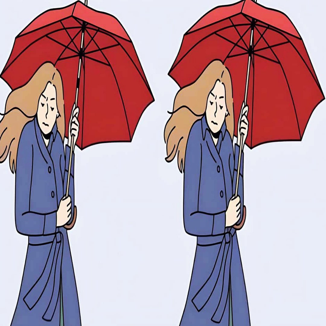 Vind de 3 verschillen tussen deze afbeeldingen van het meisje met de paraplu… in slechts 17 seconden.