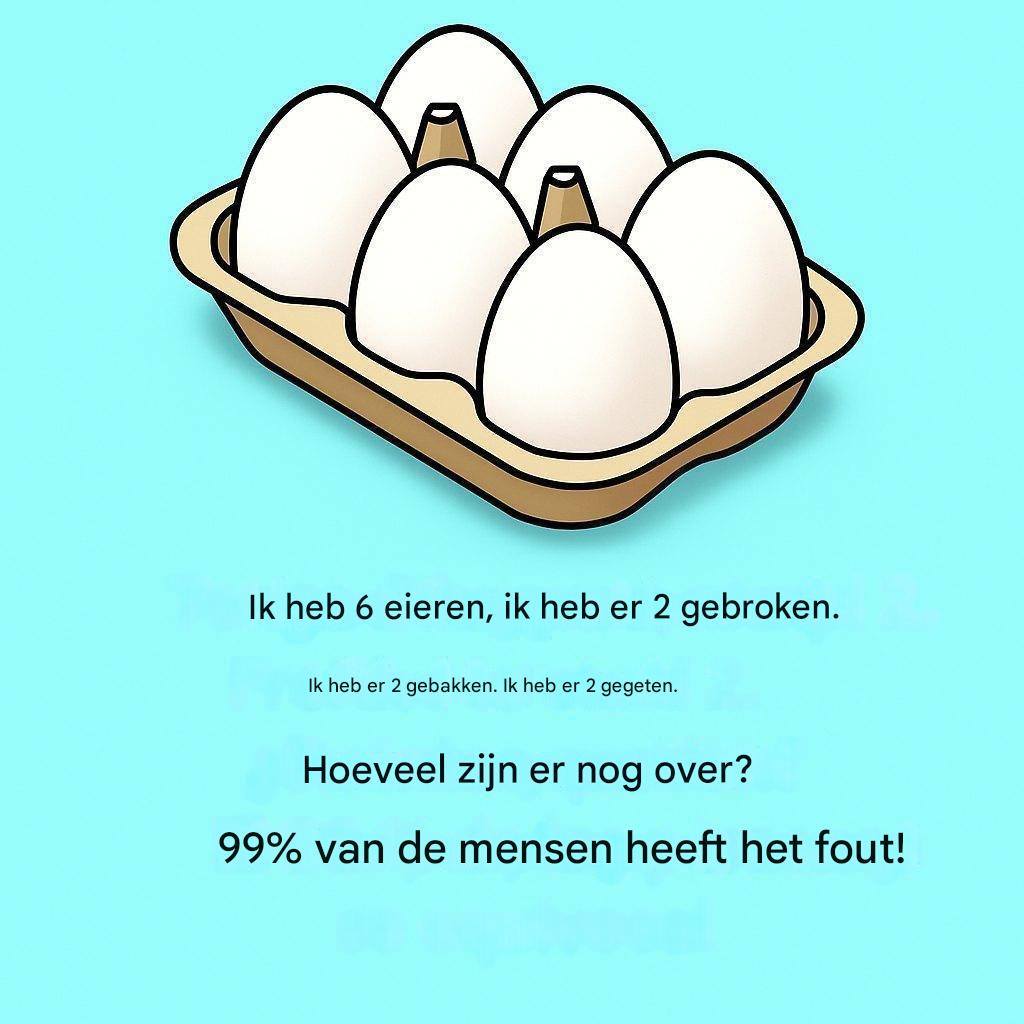 « Ik heb 6 eieren. Ik heb er 2 gebroken, 2 gebakken en 2 opgegeten. Hoeveel eieren zijn er nog over? 99% van de mensen heeft het mis. »