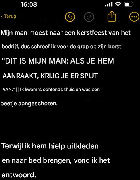 Vóór het kerstfeest op kantoor schreef ik een grappig briefje op de borst van mijn man en kreeg een onverwachte reactie.