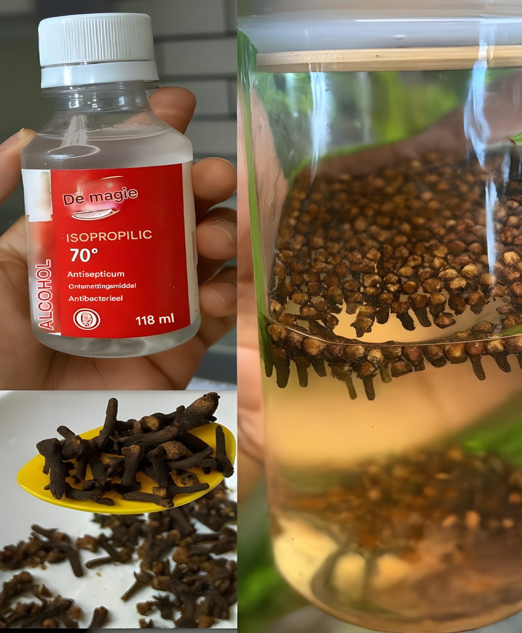 - Waarom het werkt: Alcohol heeft ontsmettende eigenschappen en kruidnagel versterkt dit effect met zijn antimicrobiële werking.