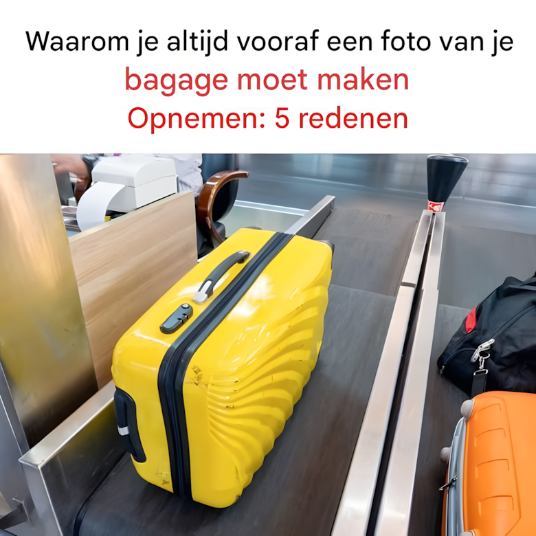 Jaarlijks verdwijnen duizenden stukken bagage tijdelijk of permanent op luchthavens. Als uw koffer kwijtraakt, kunnen luchtvaartmaatschappijen deze met een recente foto sneller identificeren. Zo vergroot u de kans dat u hem terugvindt.