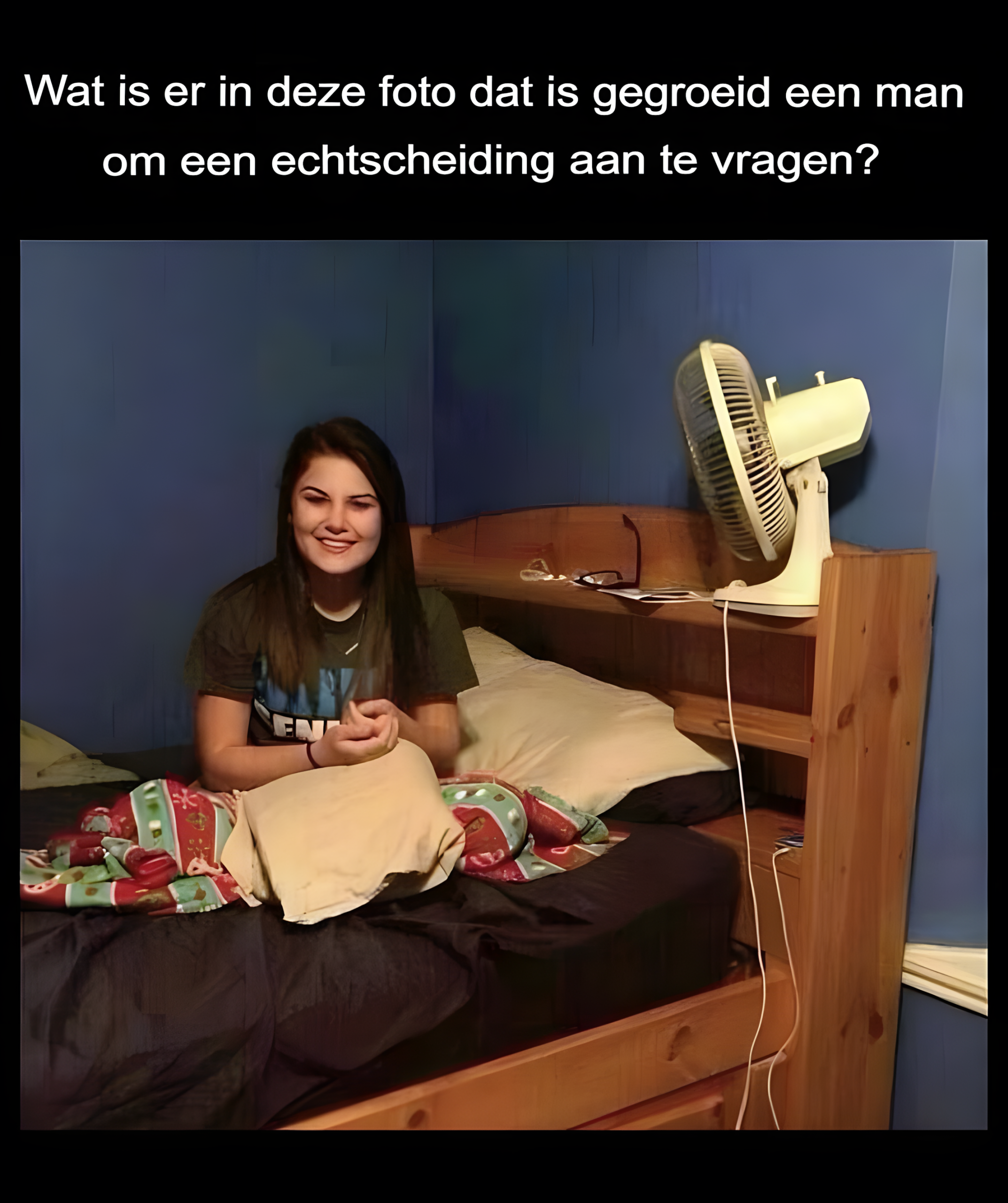 Stel je voor dat je man onverwachts thuiskomt van een zakenreis.  Hij besluit de vreugde van de hereniging met zijn vrouw vast te leggen , die hem met een stralende glimlach verwelkomt. Op de foto lijkt alles rustig en warm: een slap bed, een ventilator op de achtergrond, een moment zonder kunstgrepen. Maar achter deze eenvoud schuilt een mysterie dat binnenkort onthuld zal worden.