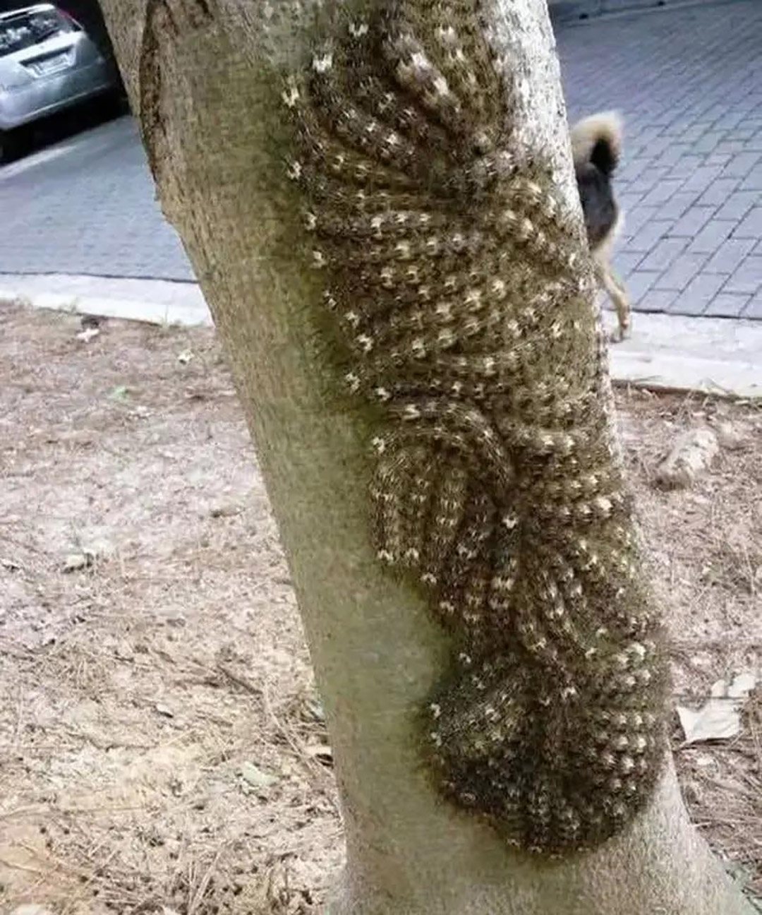Deze kleine beestjes beschikten over een effectief wapen: camouflage. Perfect gepositioneerd tegen de boomschors waren ze vrijwel niet te onderscheiden van mos of natuurlijke scheuren in het hout. In werkelijkheid waren het rupsen met brandharen die ernstige huidreacties konden veroorzaken.