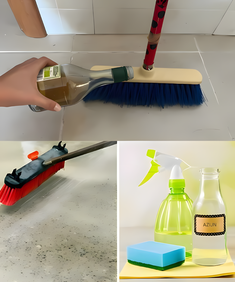 WITTE AZIJN OP DE BEZEM OM SCHOON TE MAKEN, DE VLOER ZAL NOOIT MEER HETZELFDE ZIJN