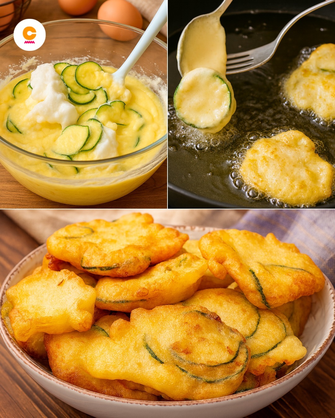 Knapperig van buiten en ongelooflijk zacht van binnen, deze courgettewolkjes zijn werkelijk onweerstaanbaar. Deze kleine, heerlijke beignets worden gemaakt met verse, seizoensgebonden courgette, rauw gesneden en klaar om te eten. Een eenvoudig mengsel van bloem, melk en eieren, samen met je favoriete courgettesoort en geraspte kaas, zijn de enige ingrediënten die nodig zijn om deze zachte, luchtige wolkjes op tafel te zetten. Ze worden vervolgens in hete olie gefrituurd tot ze goudbruin zijn.