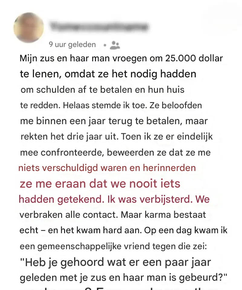 Ze beloofde me terug te betalen. Drie jaar later realiseerde ik me de waarheid over mijn zus