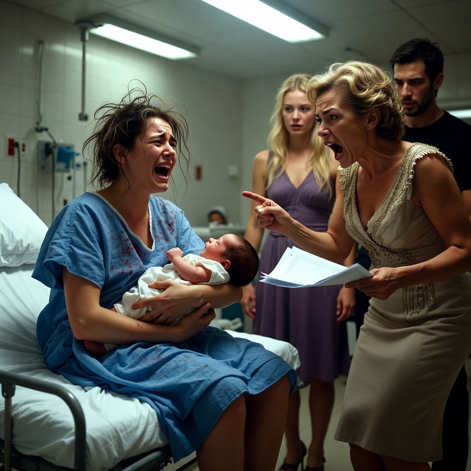 Maar Patricia, onvermurwbaar en koud, stapte toch naar voren. Haar handen reikten naar de pasgeborene, alsof ze het volste recht had om hem bij zijn moeder weg te halen.