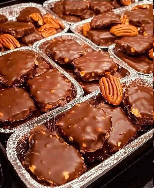 Als je nog nooit van turtles hebt gehoord, probeer dan eens deze pecannoten met karamel en chocolade. Om de snoepjes op turtles te laten lijken, heb je 5 halve pecannoten nodig. Kortom, heerlijk.