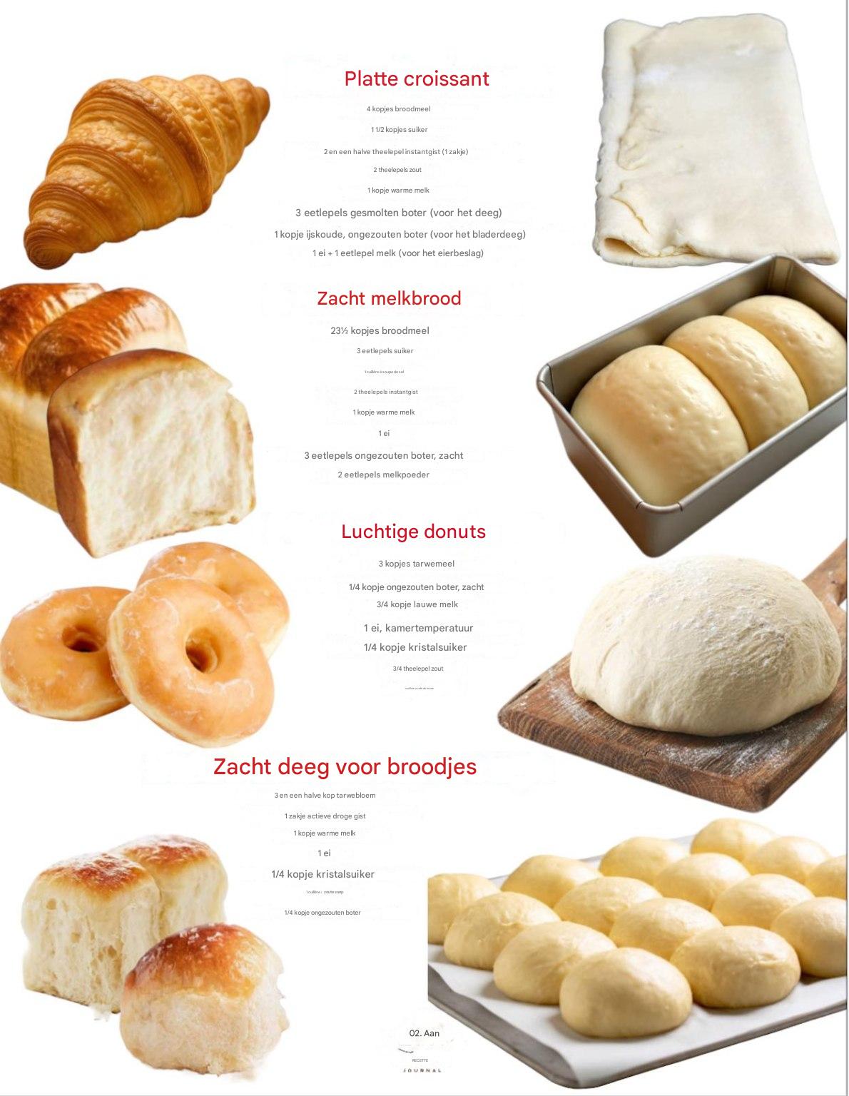 Rol het deeg uit tot een rechthoek, leg een blokje boter in het midden en vouw het als een envelop. Druk het plat, vouw een derde laag eroverheen en kneed. Herhaal dit 3 keer (de klassieke 3 porties). Laat het deeg tussen de vouwbeurten altijd 20 tot 30 minuten in de koelkast rusten. Rol het deeg uit tot een grote rechthoek (ongeveer 0,6 cm dik). Snijd het deeg in lange driehoeken en rol elke driehoek strak op van onder naar boven tot croissants.
